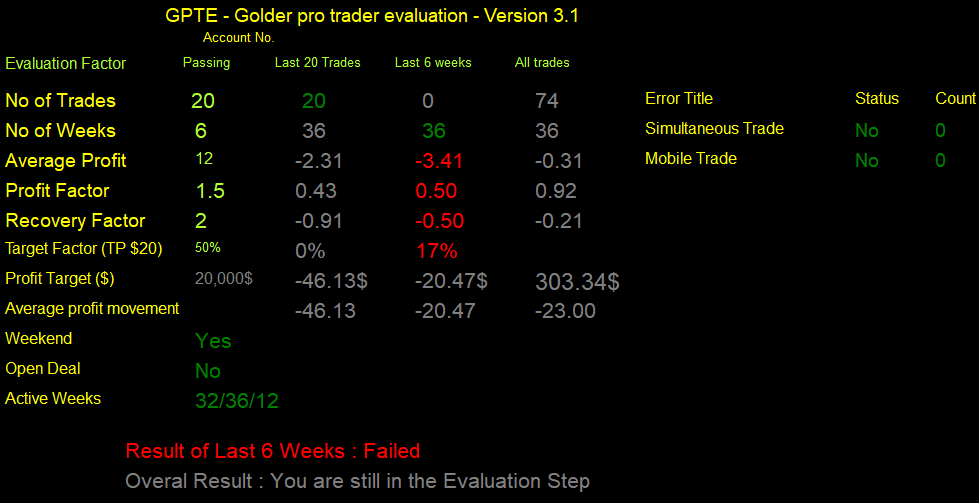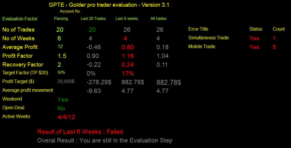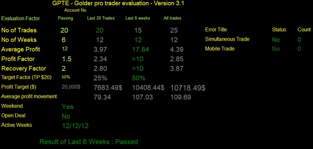 موفقیت در این برنامه بر اساس نتایج ۱۲ معامله آخر و شش هفته معاملاتی اخیر تعیین میشود. معاملهگری که معیارهای زیر را برآورده کند، موفق محسوب میشود: